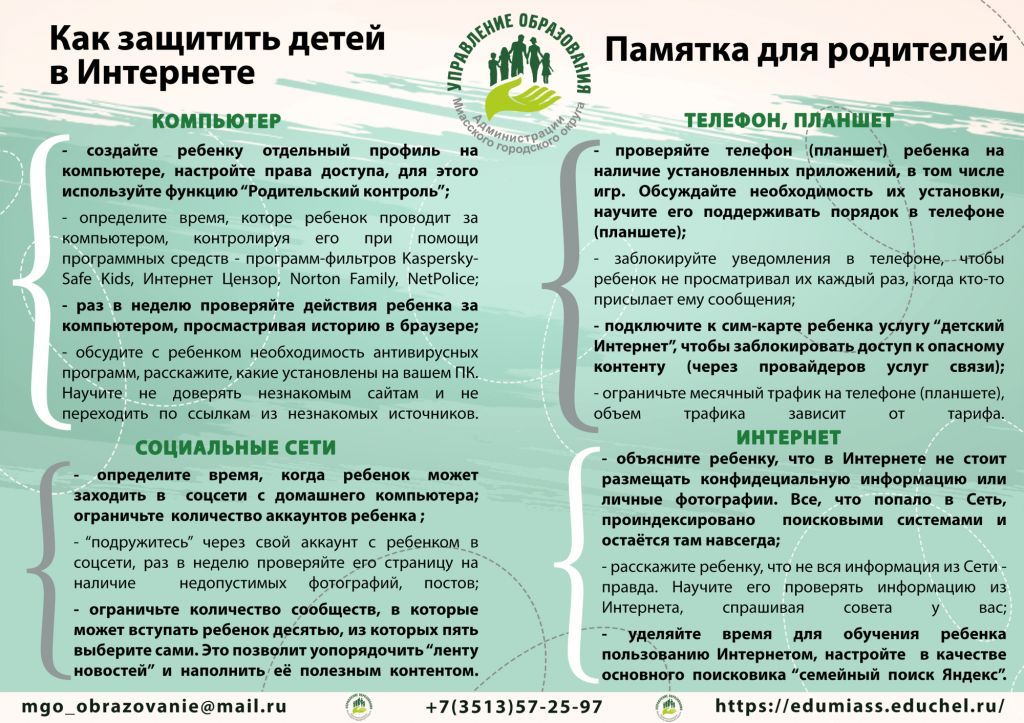 - Независимо от возраста ребенка используйте программное обеспечение, помогающее фильтровать и контролировать информацию, но не полагайтесь полностью на него. Ваше внимание к ребенку - главный метод защиты.
